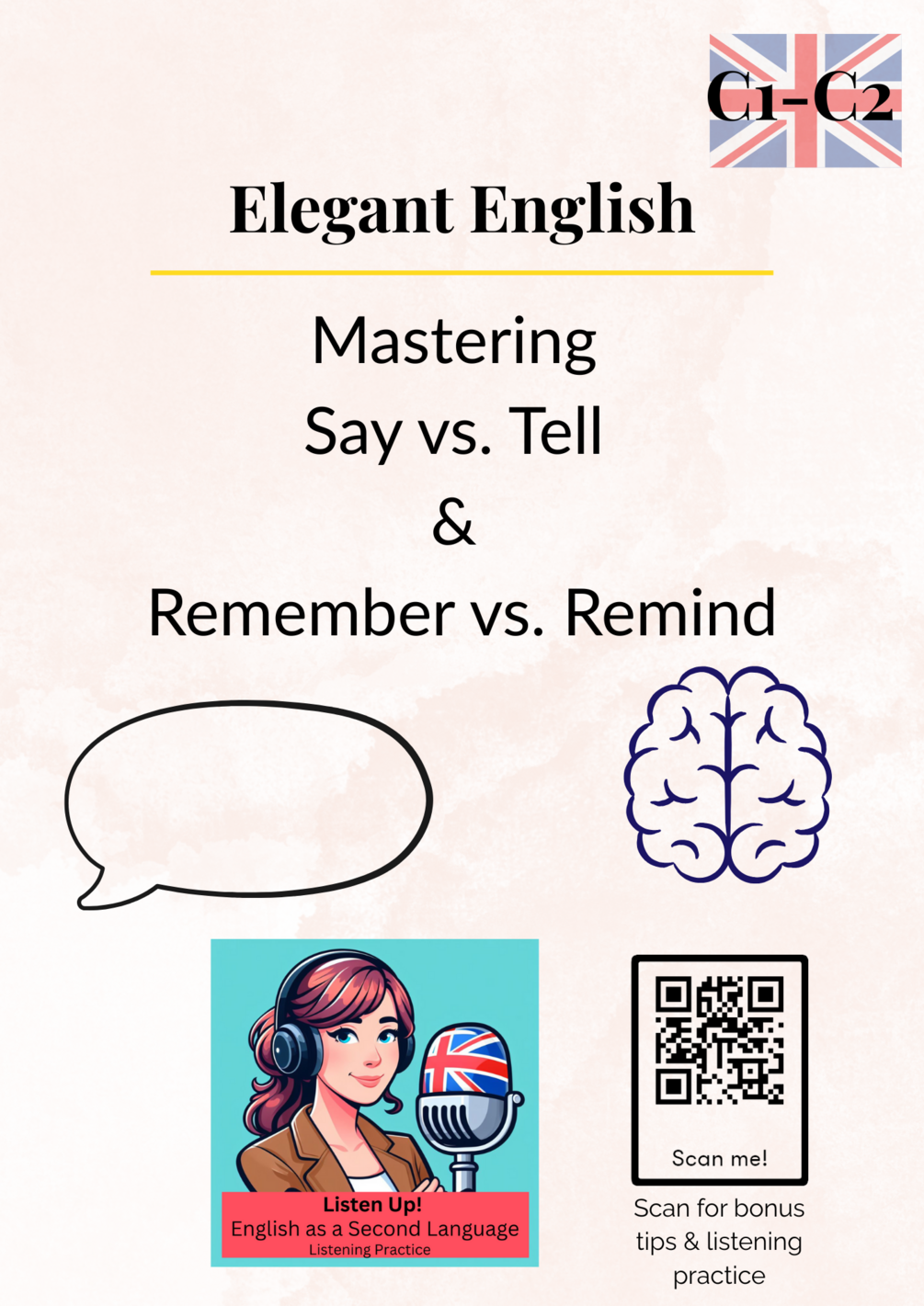 Elegant English: Mastering Commonly Confused Verbs for Advanced Fluency Say vs. Tell, Remember vs. Remind